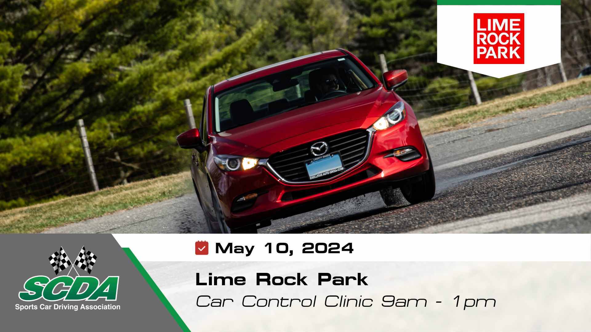 The SCDA Car Control Clinic event will take place from 9am- 1pm (please arrive by 8:30am)
