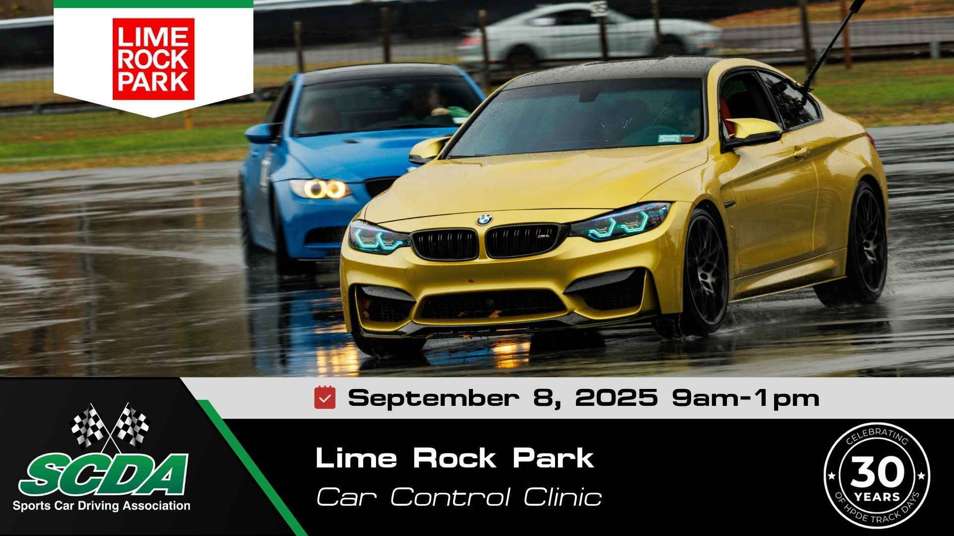 The SCDA Car Control Clinic event will take place from 9am- 1pm (please arrive by 8:30am)