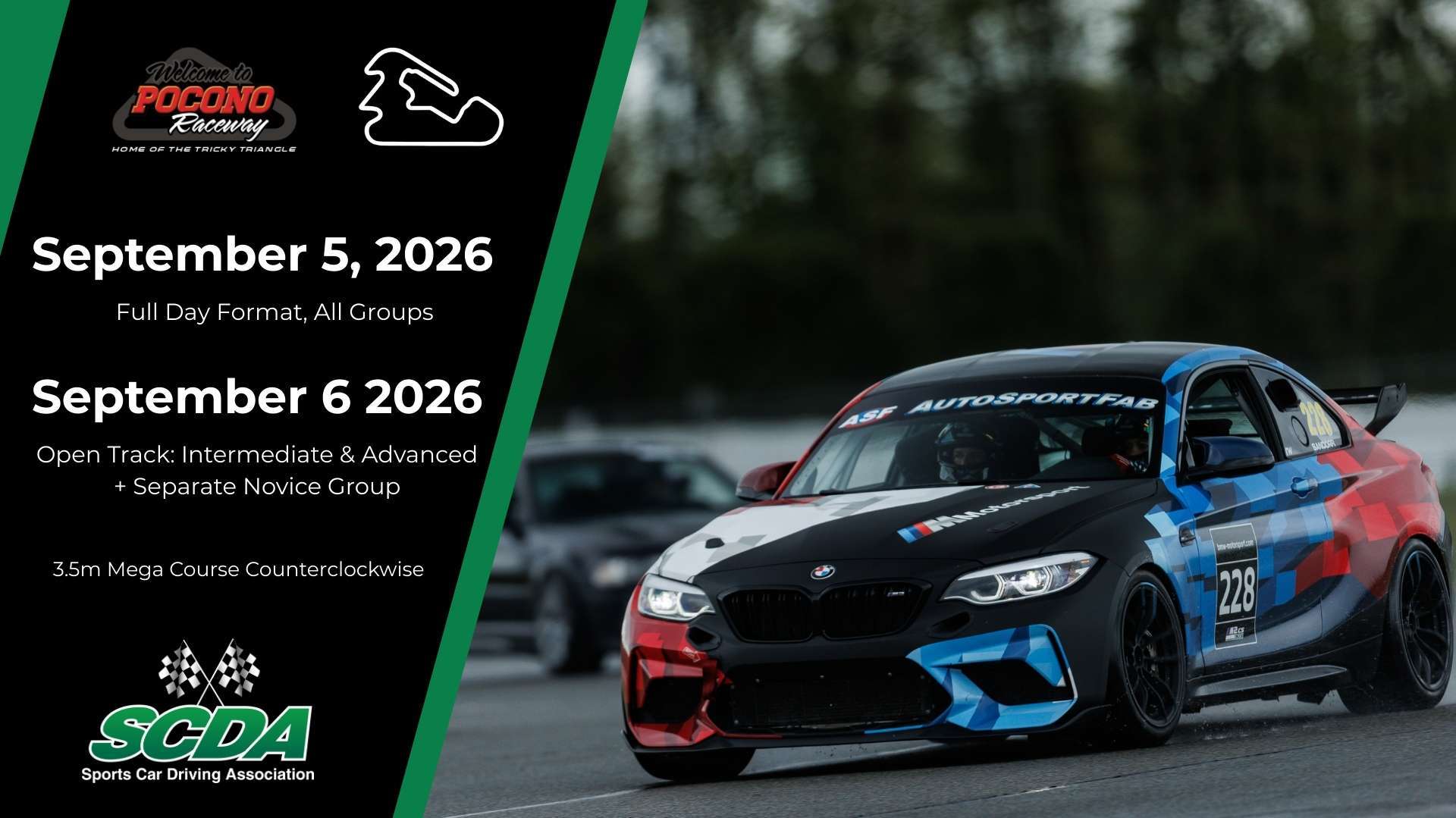 SCDA Pocono Raceway HPDE + OPEN Track Day Event π